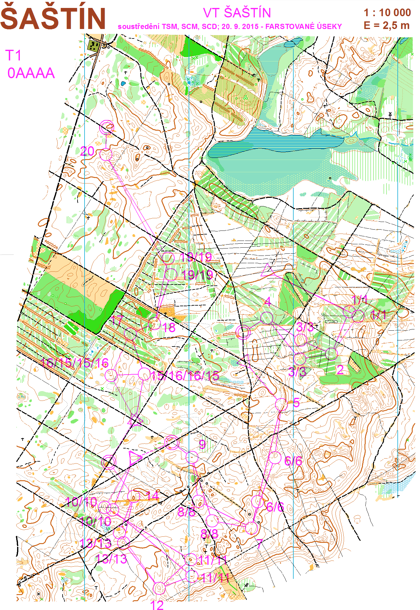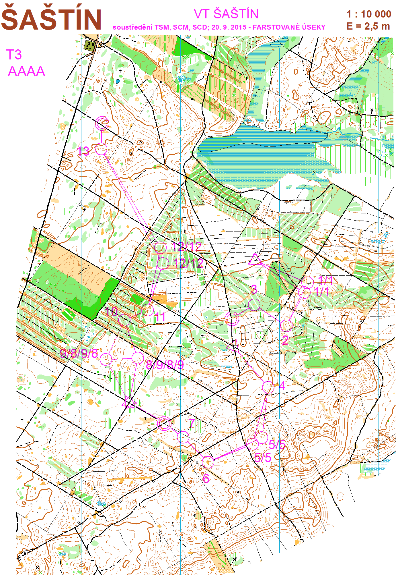 Poslední fází byly farstované úseky. Trénink byl čistě zaměřený na řešení štafetových situací ve vysokém tempu - využívání rychlejších soupeřů pro hrubou navigaci, ale už samostatné hlídání dohledávky. Nutno dodat, že tempo bylo opravdu vysoké - nejrychlejším klukům se dařilo běhat lehce přes 4´ / km vzdušně, podobnou palbu jsem už dlouho nezažil a bylo to ve výkonu nejen mém poznat... Mapy - T1, T2, T3.