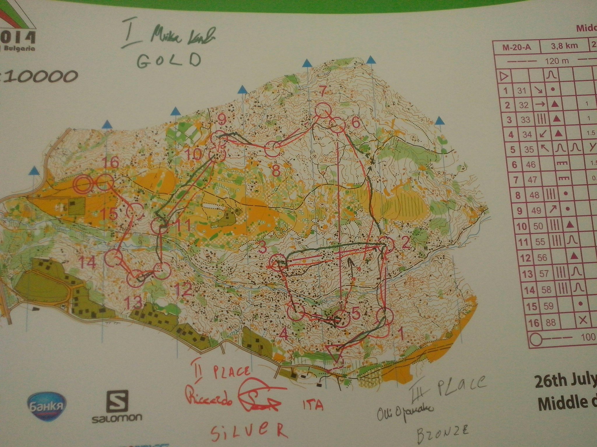 Finále proběhlo ve stejném terénu, který zabezpečil vysokou orientační náročnost hodnou mistrovského middlu. Z českých závodníků i závodnic se nejvíce dařilo Katce Chromé, která zaběhla 19. místo. Zbylí okupovali pozice mezi čtvrtou a šestou desítkou. Mapy s postupy vítězů na twitteru - M, W. Jonáš se rozhodl finále B vynechat, zafandit a pošetřit síly do štafety. Andrea doběhla na slušném 17. místě.